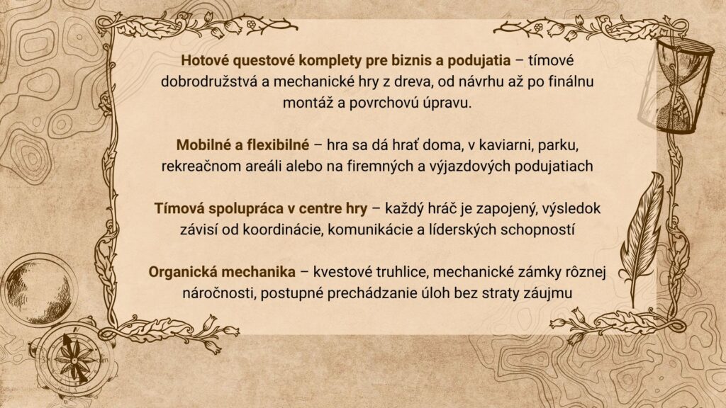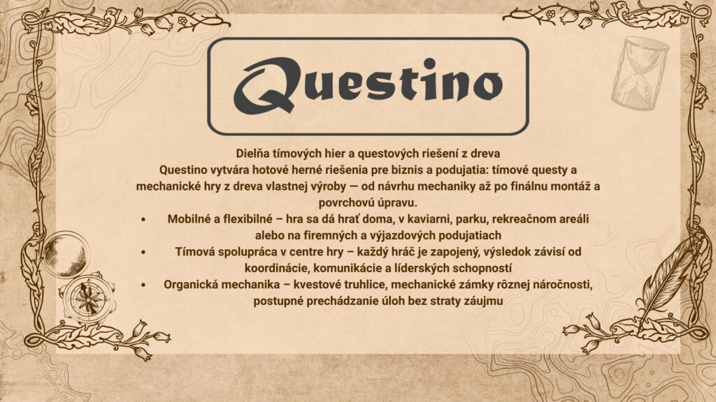 Questino Modular Puzzle Systems for Escape Games & Team Building Browse Products Request Custom Project Mechanical Props View Complete Kits View Electronical Props View Board Games View Solutions for Business From escape rooms to corporate events and training,Questino provides durable puzzle systems designedfor commercial use and high player throughput. Explore Solutions Custom Escape Prop Development Need unique puzzles or a full game system?We design and manufacture custom escape roomprops and interactive experiences for projects worldwide. Request Custom Project Why Questino Made in EU Designed and manufactured in Slovakia Commercial Durabiliti Built for high player throughput Worldwide Shipping Delivered to projects globally